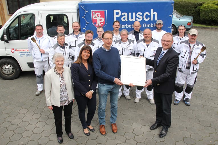 Heute arbeiten im Malerbetrieb Pausch 10 Facharbeiter und 2 Auszubildende. Das Auftragsgebiet umfasst überwiegend den Raum Mittelhessen (Marburg, Gießen), sowie Umgebung. Als Zeichen für Qualität und langjährige Erfahrung unserer Facharbeiter haben mittlerweile bereits 4 Mitarbeiter ihr 25-jähriges Dienstjubiläum in unserem Malerunternehmen gefeiert.